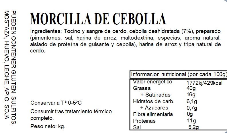 Morcilla de cebolla elaborada con primeras calidades y elaborada de forma tradicional.